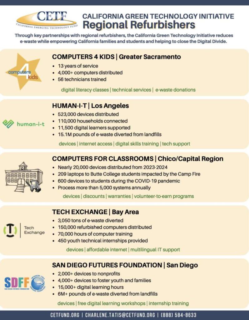 By keeping more computing devices in California instead of shipping them overseas, the initiative not only advances digital equity, but also reduces environmental harm and creates local jobs in device refurbishment and tech support—a win-win for both equity and the green economy.